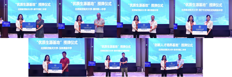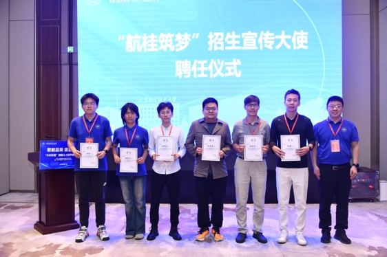 为强化学校招生宣传工作质量,扩大学校在广西学子中影响力。学校广西招生组聘请了11名“启航导师”和52名“招生大使”,承担起促进北航与广西各中学精准对接的责任,共同推动公司在广西的招生与宣传工作。邓怡为郑彦良、贠超、马小兵等“启航导师”代表颁发聘书,刘睿为梁恩和、赵圆、李炫等师生代表颁发“航桂筑梦”招生宣传大使聘书。