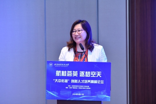邓怡致辞讲话,全面介绍了北航团队建设、招生情况以及人才培养等特色亮点。她指出,北航将以“大中衔接”为重要抓手,抢抓机遇求突破,着力打造人才培养新模式。希望以此次论坛为契机,与各个重点中学开展更多创新合作模式,共同提升人才培养质量,为党育人、为国育才。