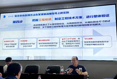 结合我国航天工程大量实际案例,李明华总师讲解了航天复杂系统工程的内涵和特点。航天系统工程具有高风险、高动态、强耦合、强约束的基本特点。李明华总师还特别引用和强调了中国“两弹一星功勋”和“航天之父”钱学森先生的话:“要学一点哲学书,要讲究思想方法和工作方法”,从而引出并讲述了航天复杂系统工程管理中的“4M”方法:把握事物规律、把握科学规律、把握技术规律、把握工程规律。李明华总师以航天工程实践为例,详细说明了我们应该如何把握事物规律,厘清现象本质,把复杂问题确定化;如何把握科学规律,抓主要矛盾,认清问题机理;如何把握技术规律,抓矛盾主要方面,确定主要技术途径;如何把握工程规律,制定工程技术方案,进行整体验证。